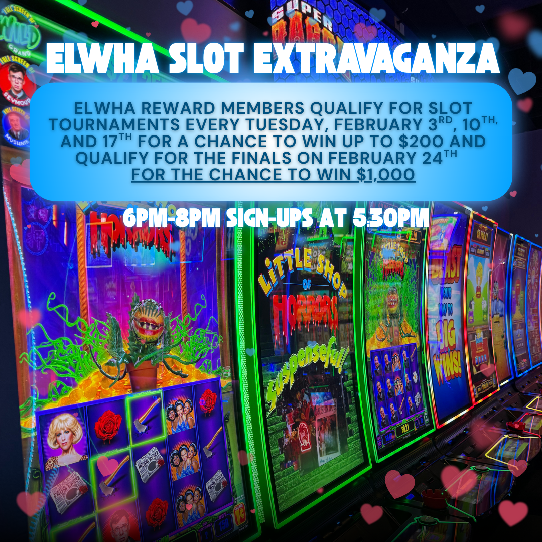 Elwha River Casino is the friendliest casino on the Peninsula, nestled in the heart of the pristine Elwha River Valley. It’s the locals’ favorite spot for games, friends, and fun! The action never stops, from slot tournaments and promotions to special events and delicious food. Located just 7 minutes west of Port Angeles, this convenient location is the perfect destination for a fun and exciting getaway!